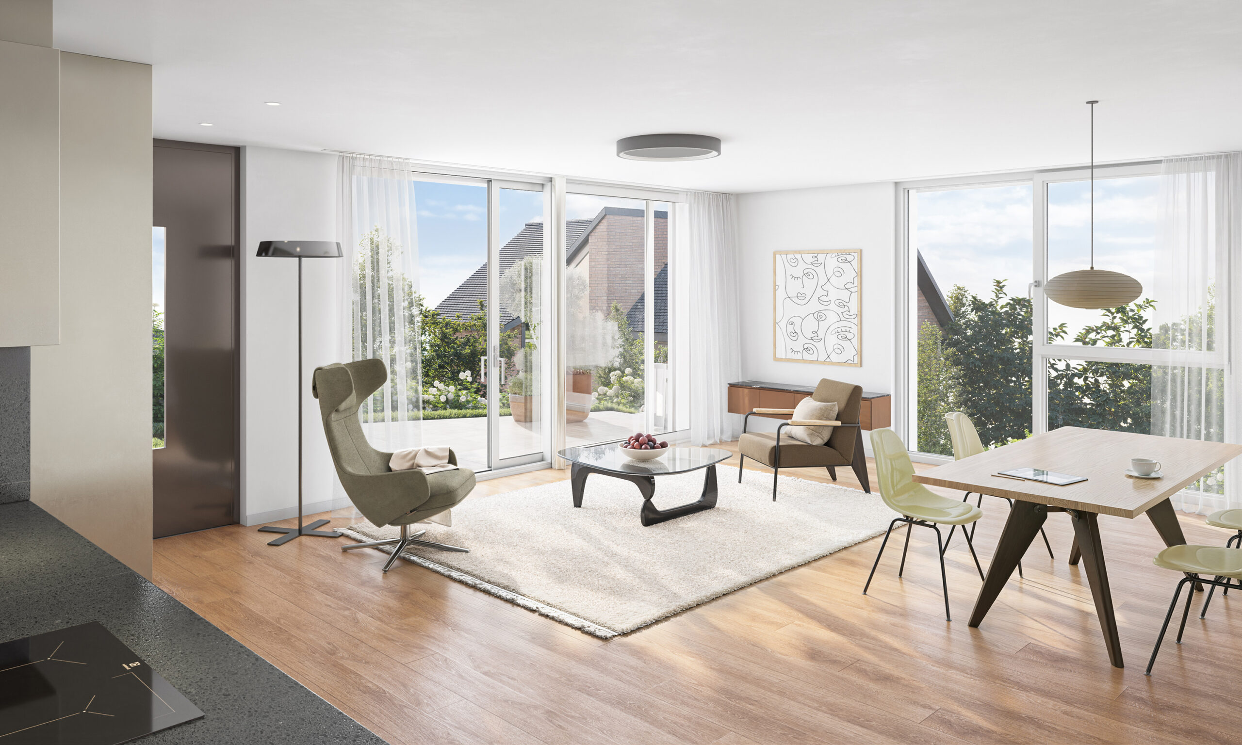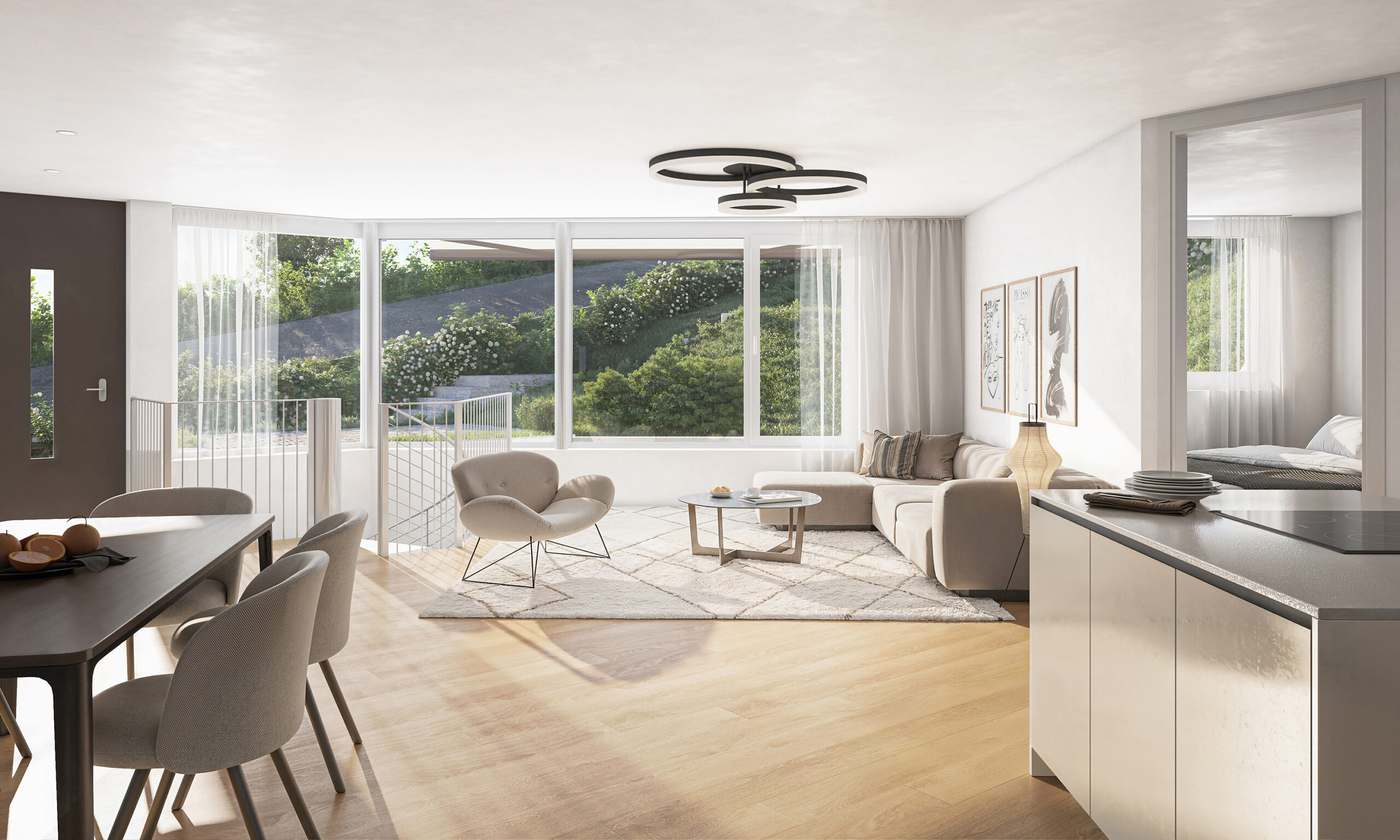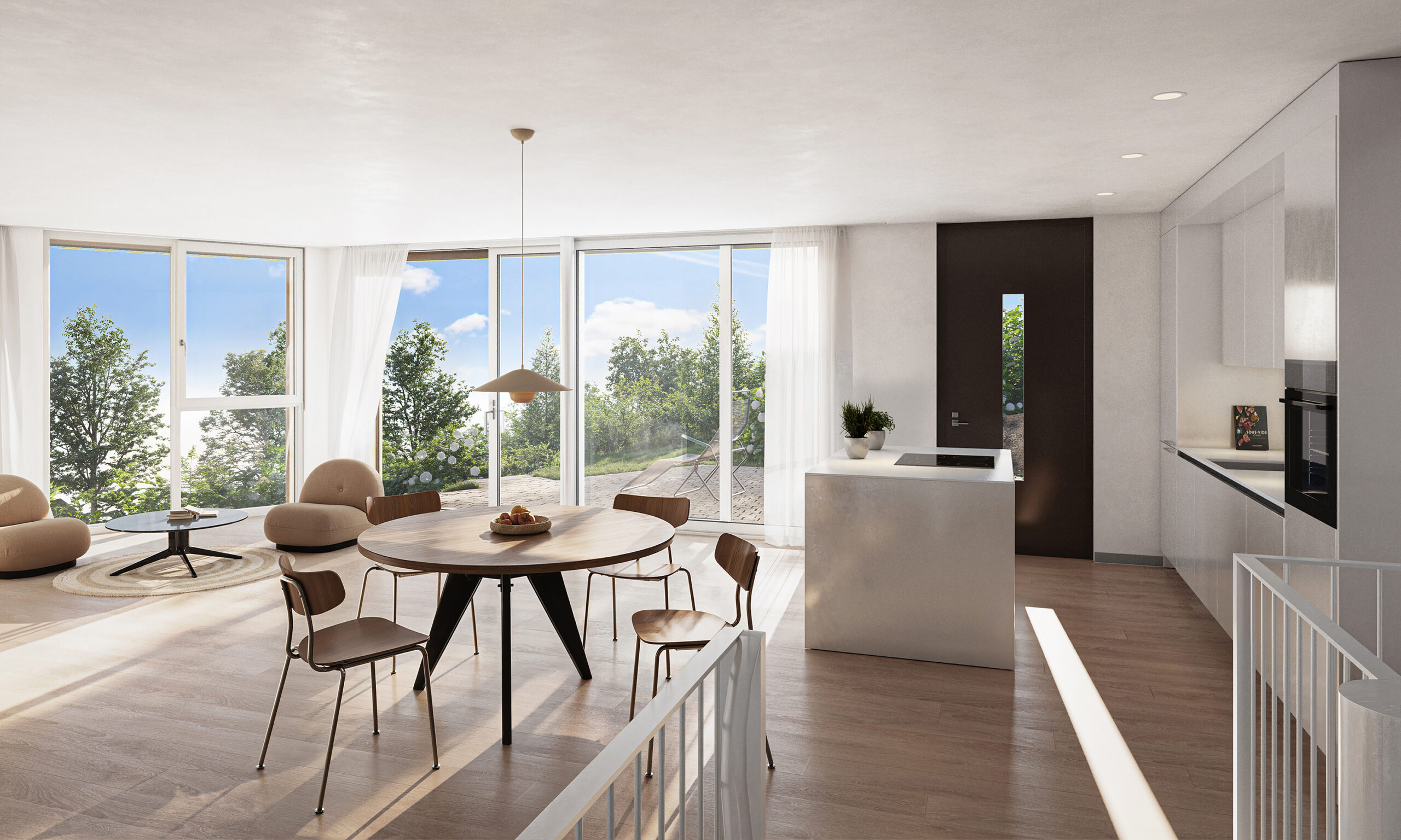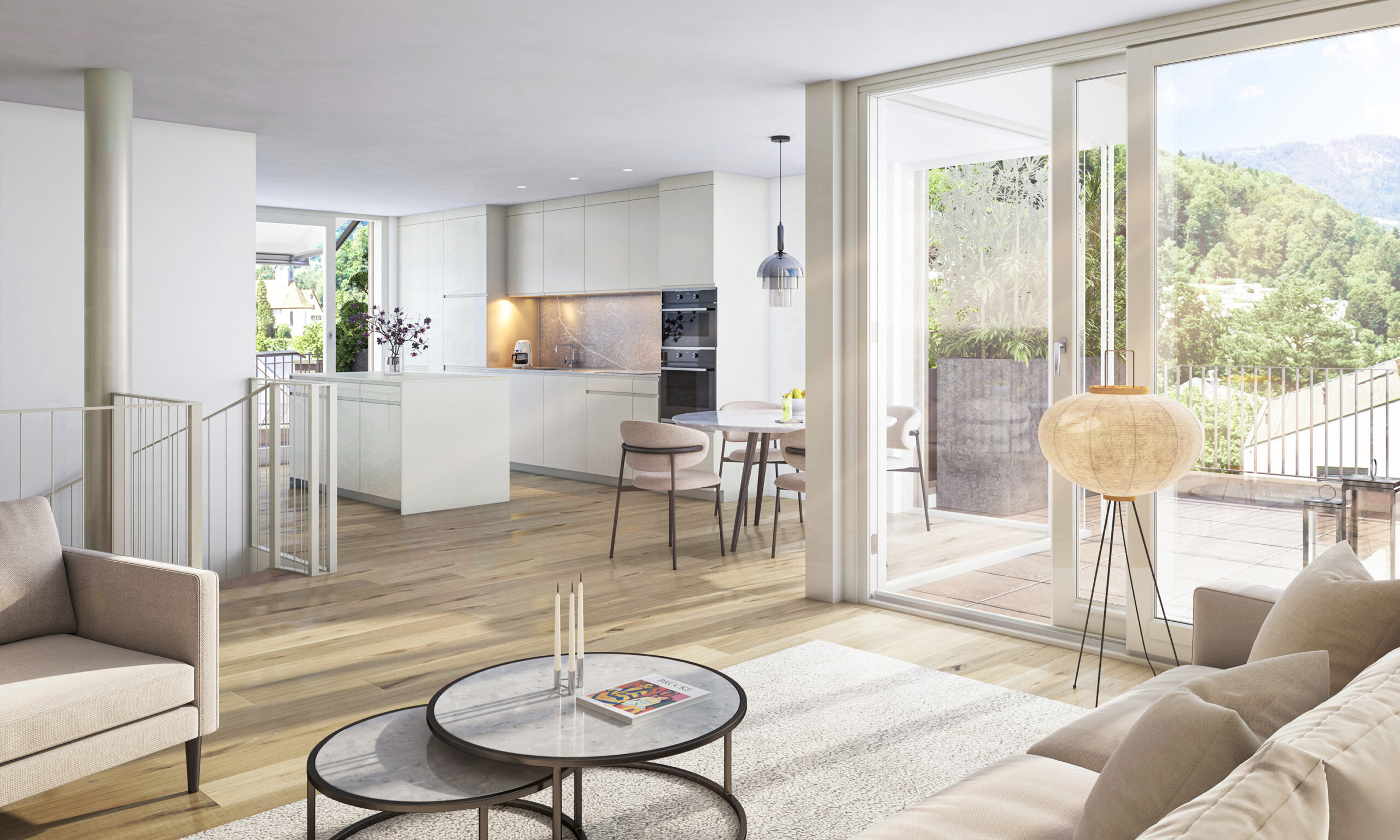 Das Gebäude ist ein architektonisches Meisterstück, mit welchem es gelungen ist, sechs individuelle Wohneinheiten zu einem harmonischen Ganzen zusammenzufügen. Die Assemblage der «sechs Häuser im Haus» in gehobenem Standard garantiert gemeinschaftliches Zusammenwohnen mit individuellem Lebensraum und Privatsphäre und erfüllt durch die gelungene Strukturierung sämtliche Ansprüche an zeitgemässes Wohnen. Die grosszügigen 2.5 bis 4.5 Zimmer-Wohneinheiten mit 53 m² bis 162 m² und eigenem, privatem Aussenraum überzeugen nicht zuletzt dank hohen Raumhöhen und grossen Fensterflächen mit höchster Wohnqualität.